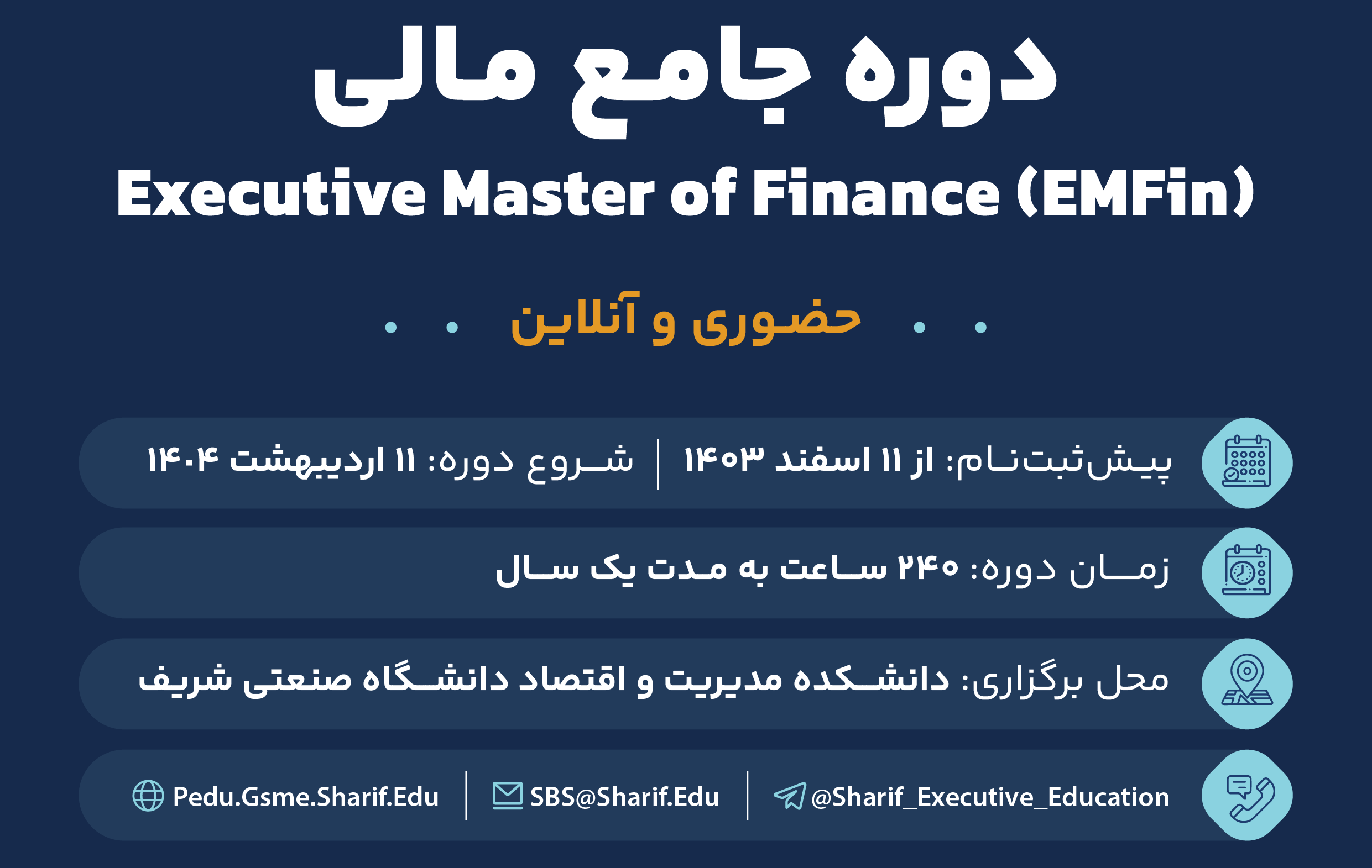 دوره عالی مالی (EMFin) با تمرکز بر مفاهیم کلیدی مالی و تجربیات عملی، مهارتهای مالی حرفهای را ارتقاء داده و دانشپذیران را برای چالشهای پیچیده مالی آماده میکند.